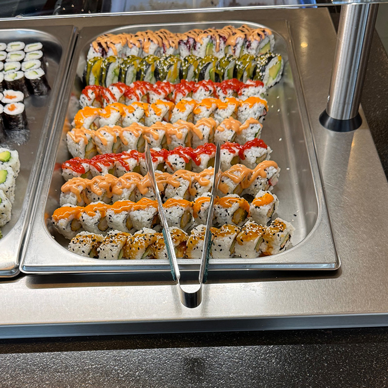 Ebenso beliebt sind unsere Maki-Rollen, die aus Sushi-Reis, Nori-Blättern und feinen Füllungen bestehen. Ob Lachs-Maki, Gurken-Maki, Avocado-Maki, Thunfisch-Maki oder bunte Kombinationen – jede Rolle wird frisch zubereitet und sorgfältig geschnitten.